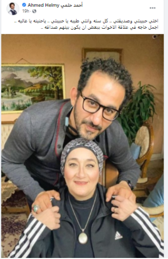 وعلق احمد حلمي على الصورة قائلا :”“أختي حبيبتي وصديقتي .. كل سنه وانتِ طيبه يا حبيبتي .. ياحنينه يا غاليه .. أجمل حاجه في علاقة الأخوات ببعض أن يكون بينهم صداقة”.