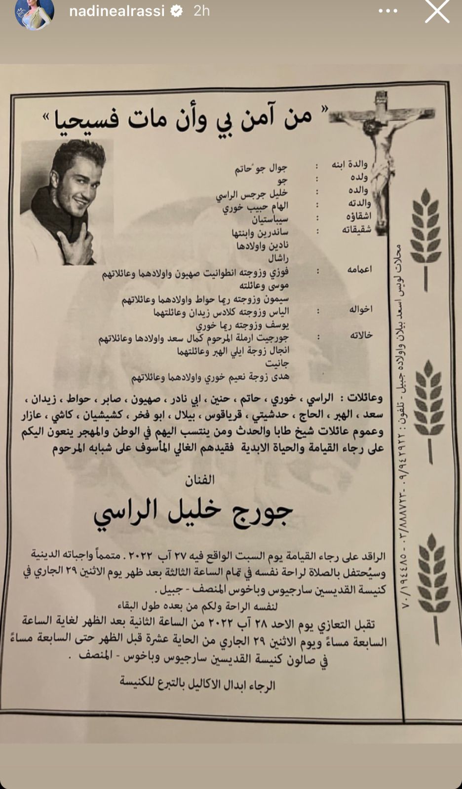 اليكم تفاصيل التعزية بالراحل جورج الراسي