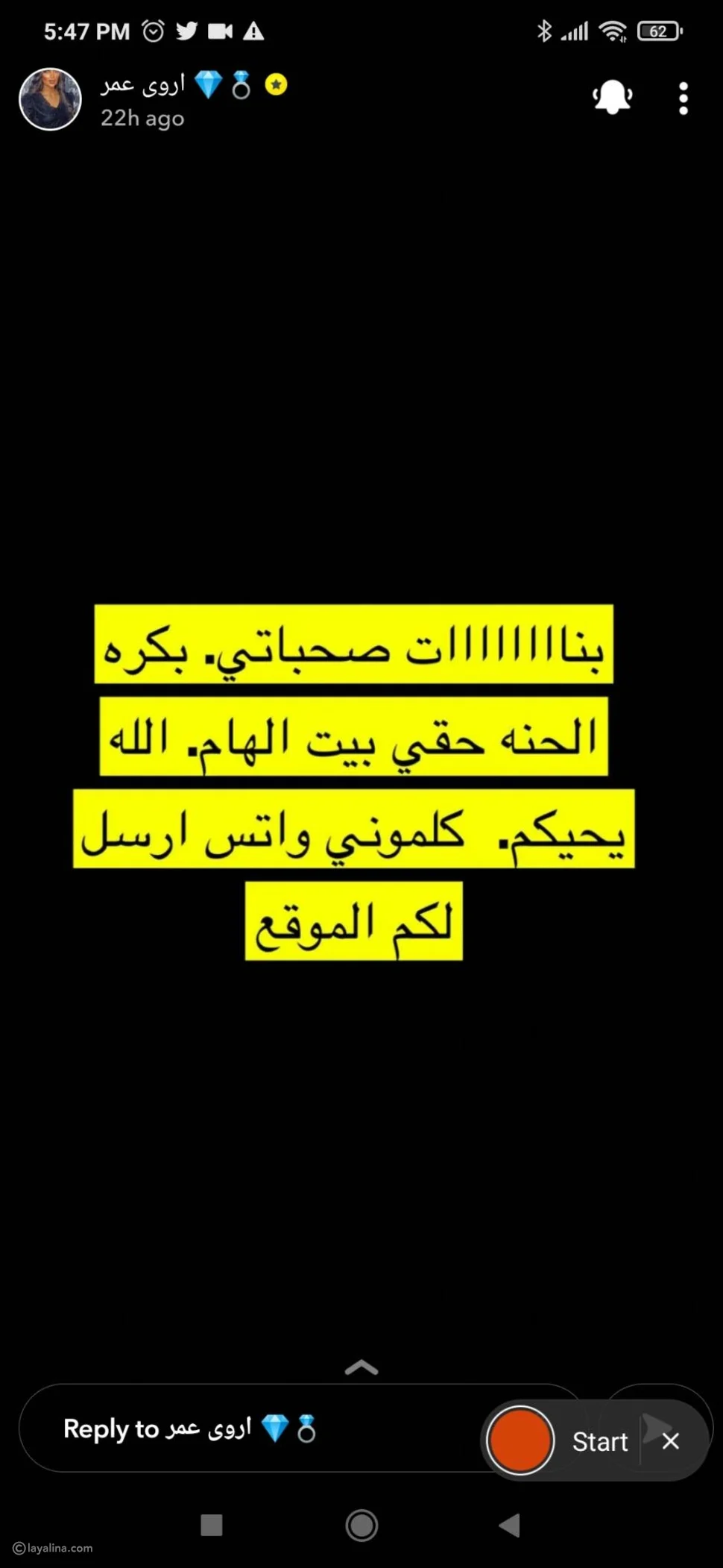 اروى عمر تؤكد خبر زفافها : بكرة الحنة حقي في بيت إلهام الله يحييك