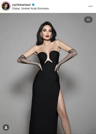 حيث نشرت عبر خاصية الستوري على انستغرام صور وهي ترتدي فستان اسود انيق مكشوف الصدر.