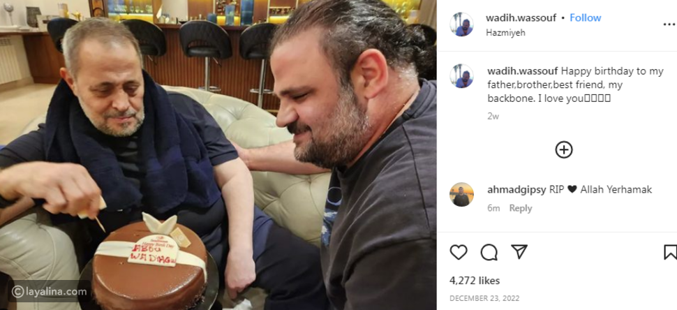 وظهر وديع في الصورة برفقة سلطان الطرب وهو يقدم له قالب من الحلوى وعلق على الصورة قائلاً: “عيد ميلاد سعيد لوالدي، أخي، أعز أصدقائي وعمودي الفقري. أحبك”.