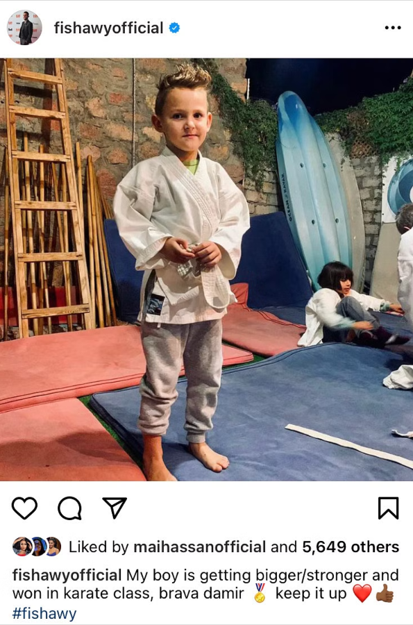 حيث نشر الفنان المصري صورة لابنه “تيتوس” عبر”انستغرام” وأرفقها بتعليق قال فيه: “ابني كبر وأصبح أقوى وفاز في فئة الكاراتيه، استمر في التقدّم.”