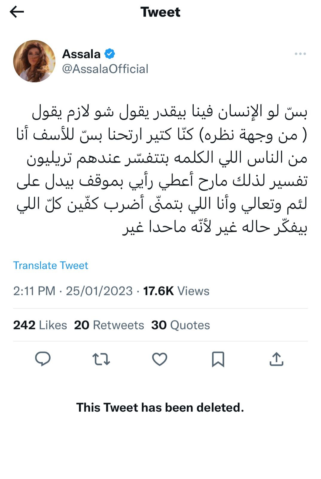 اصالة نصري تحذف تغريدتها وتوجه رسالة قاسية : قصّه بلا طعمه وفشّيت شوي خلقي