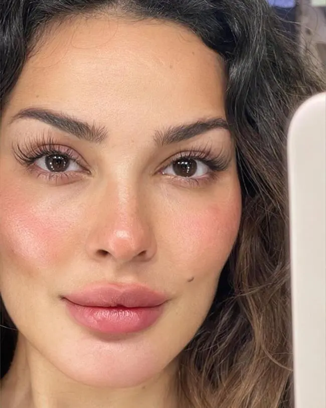 وشاركت صورة لها بدون “مكياج” مستعرضةً بشرتها النضرة وعلَّقت قائلة: “مكياج ودون مكياج هما سري اليومي، استخدم منتجي الخاص للمسة ناعمة من المعان، من الشفاه حتى الخدود”.