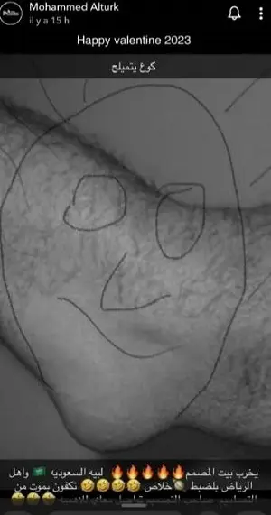 نشر المنتج البحريني محمد الترك صورة عبر”انستغرام” سخر فيها من طليقته دنيا بطمة وذلك برسم صورة لها على احد اعضاء جسمه وهو كوع رجله ، حيث شبهه بذقنها.