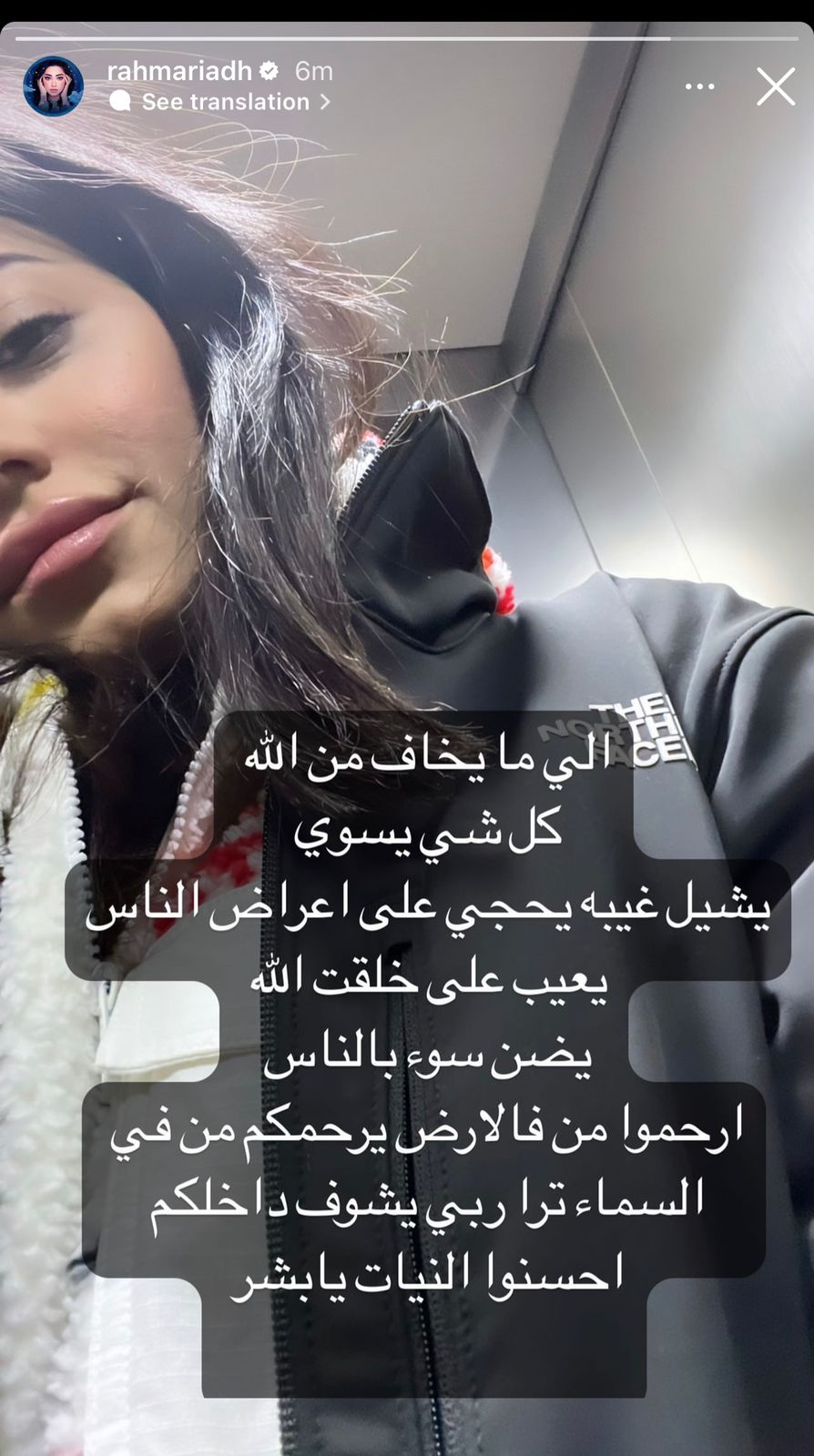 وكتبت على الصورة : “الي ما يخاف من الله كل شي يسوي .. يشيل غيبة .. يحكي على اعراض الناس ..يعيب على خلقة الله .. يظن سوء بالناس.”