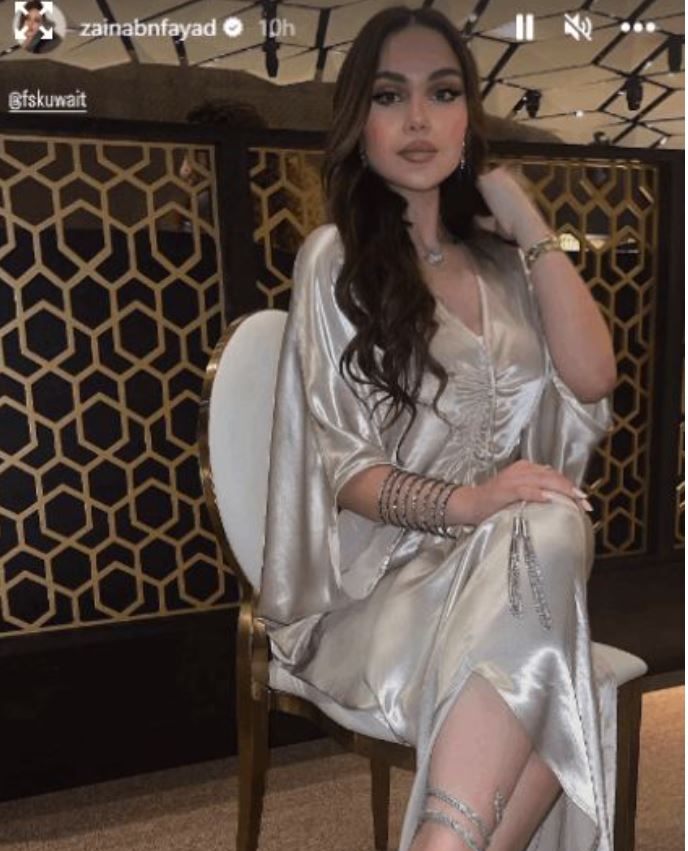 اذ نشرت زينب فياض عبر خاصية الستوري على انستغرام صورة ظهرت فيها وهي ترتدي عباءة فضية، خلال حضورها إحدى المناسبات الخاصة بشهر رمضان في مكان اقامتها في الكويت.