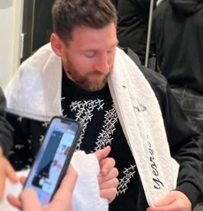 وشارك الوسوف الهدية التي قدمها لبطل كأس العالم 2022 وهي منشفة بيضاء تحمل توقعيه، وكتب: “إلى ميسي مع حبي”.