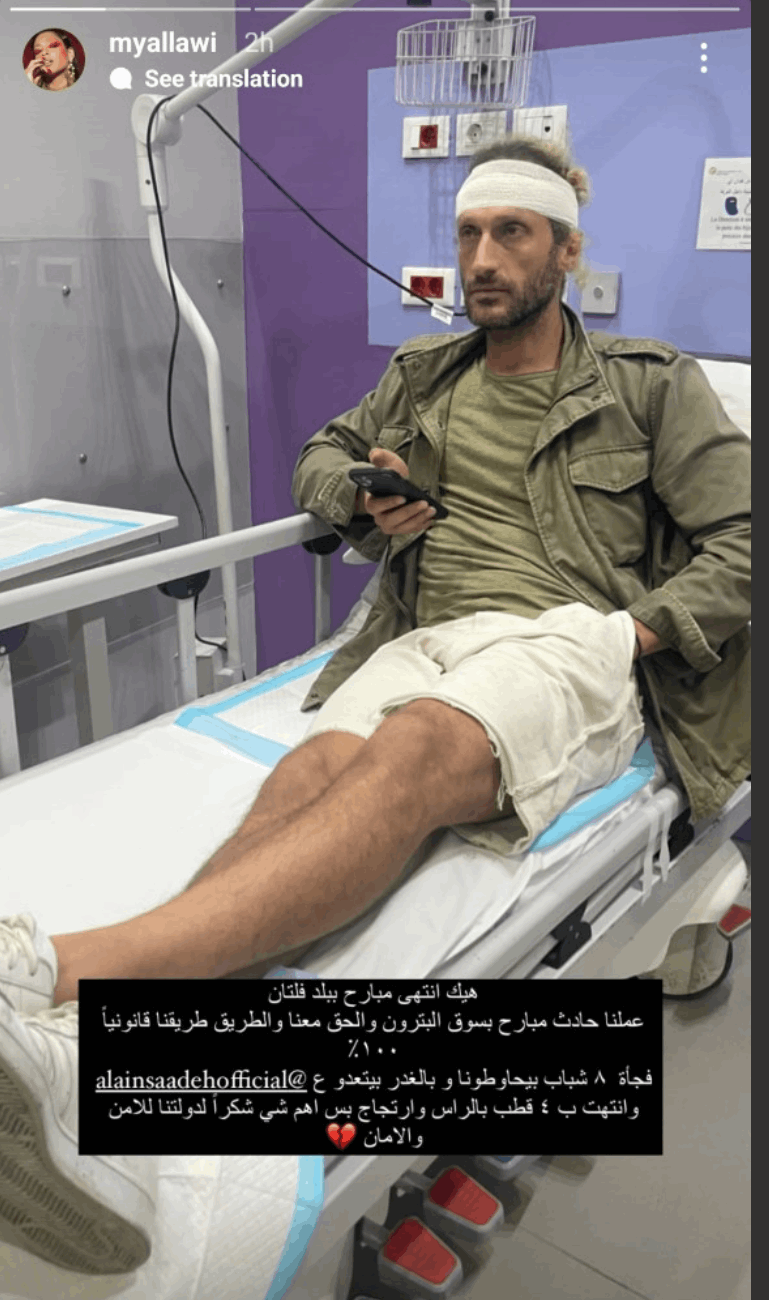 ونشرت ميا صورة لزوجها من المستشفى وعلقت عليها قائلة: “هيك انتهى مبارح ببلد فلتان عملنا حادث سوق البترون والحق معنا وطريقنا قانونيا 100%. فجأة 8 شباب بيحاوطونا وبالغدر بيتعدو على آلان سعادة وانتهت بـ 4 قطب بالراس وارتجاج بس اهم شي شكرا لدولتنا للأمن والأمان”.