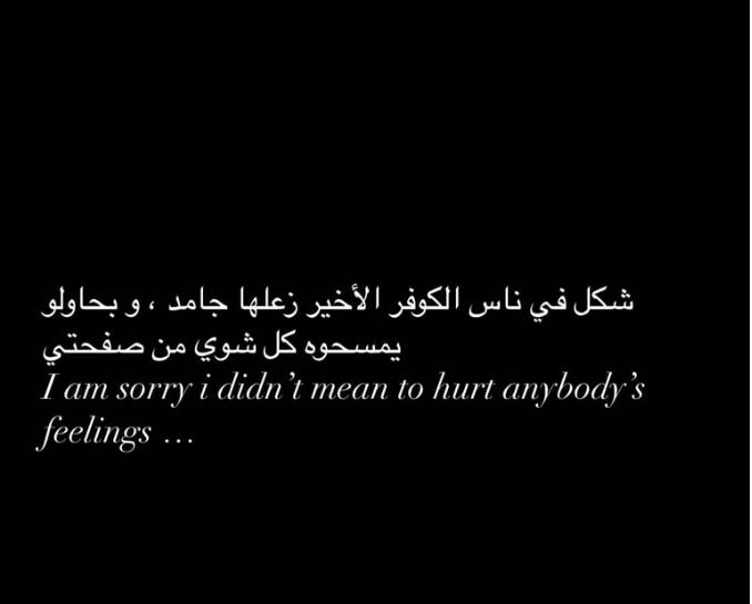 ومن ثم كتبت بما معناه : “آسفة لم أقصد ايذاء مشاعر أحد. ولا أعلم من الشخص المستاء لهذه الدرجة من الكوفر الذي قمت بنشره”.