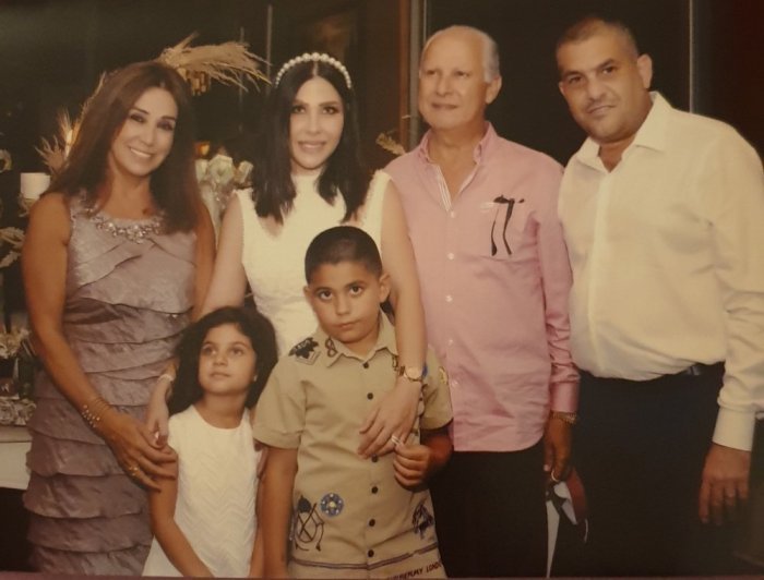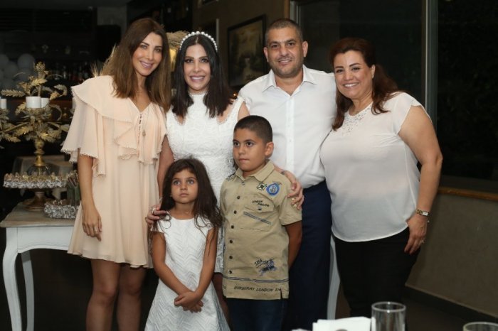 وتألقت الفنانة اللبنانية بفستان وايع قصير وظهرت معها ابنتيها ميلا وايلا في الصور والى جانبهما خالتهما نادين، بالاضافة الى ظهور والدَي الشقيقتين، في حين لوحظ غياب زوجها الدكنور فادي الهاشم عن الحفل.