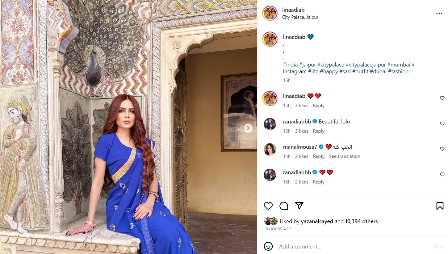 اذ شاركت لينا دياب مجموعة من الصور ونشرت حوالي الـ 9 منشورات عبر إنستغرام اثناء تواجدها في الهند.