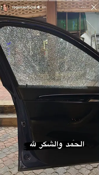 و ظهر في الصورة كسر في زجاج شباك السيارة وعلقت قائلة: الحمد و الشكر لله.