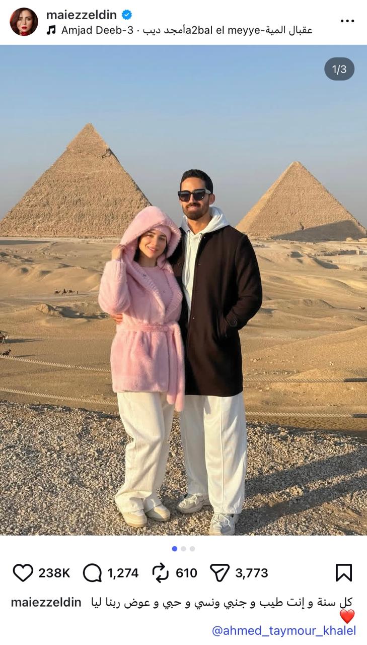 احتفلت الفنانة مي عز الدين بعيد ميلاد زوجها، مدرب اللياقة البدنية أحمد تيمور، من خلال نشر صور تجمعهما عبر حسابها في “إنستغرام”.