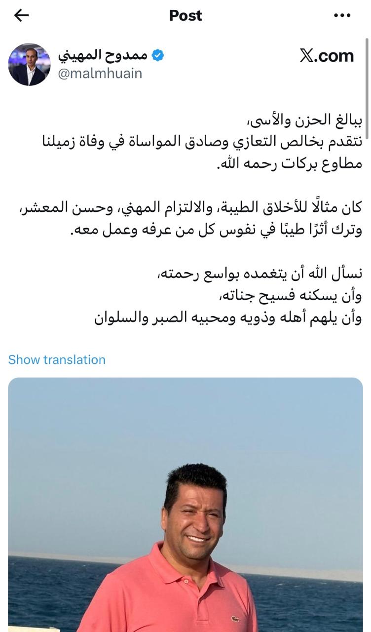 رحيل الصحفي مطاوع بركات بعد رحيل مع المرض وزملاؤه ينعونه بكلمات مؤثرة