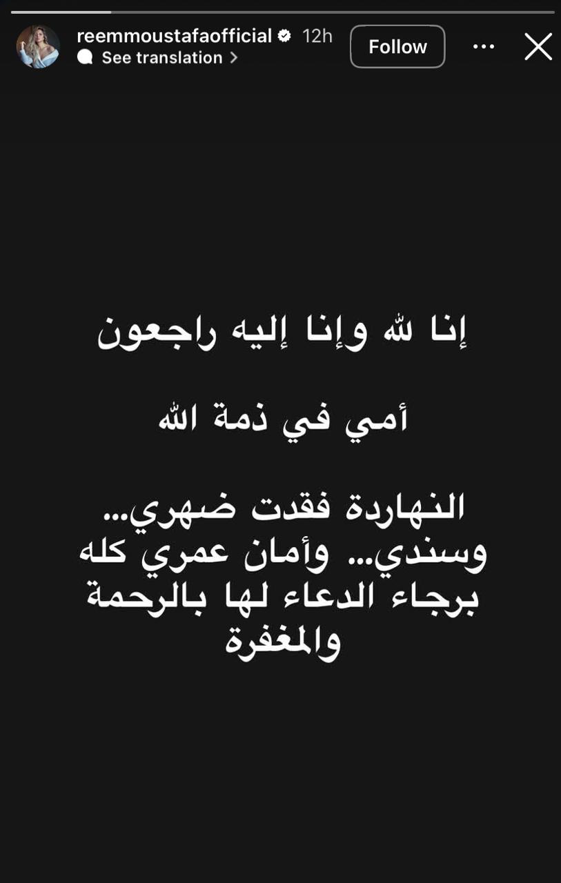 الموت يفجع ريم مصطفى بوالدتها.. نعتها بكلمات مؤثرة