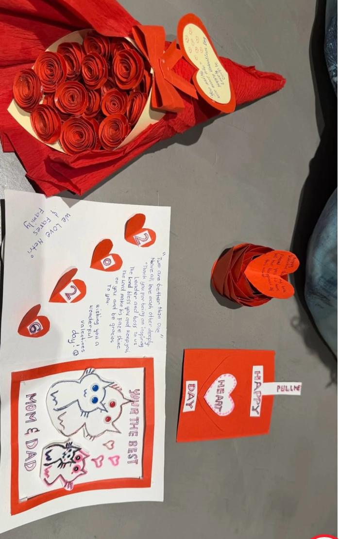 ولم يخلُ الاحتفال من لمسة فنية للصغار، حيث قدم طفلا ميريام لوالديهما رسائل يدوية من الكرتون الملون والرسومات العفوية التي تعكس علاقة الحب داخل المنزل، إلى جانب قالب حلوى أحمر وباقة ورد مميزة. كما حرصت ملكة المسرح على إظهار متانة علاقتها بزوجها من خلال نشر مجموعة صور رومانسية قديمة تجمعهما، مع استمرارها في سياسة إخفاء ملامح عائلتها عن الأضواء حفاظاً على خصوصيتهم.