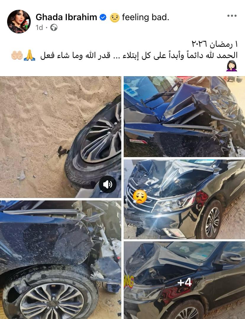 وكشفت غادة تفاصيل الحادث عبر حسابها على “فيسبوك”، حيث نشرت صورًا لسيارتها التي بدت مهشّمة بالكامل، وعلّقت قائلة: “قدر الله وما شاء فعل”، مؤكدة أن العناية الإلهية أنقذتها من كارثة محققة ومن إصابات خطيرة.