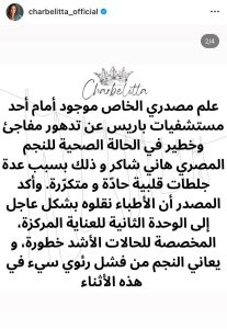 تتصدر الحالة الصحية للفنان هاني شاكر اهتمام الجمهور والوسط الفني العربي، بعد تداول أنباء مقلقة عن تدهور مفاجئ وخطير في وضعه الصحي، وصل إلى حد توقف قلبه لثماني دقائق، ما استدعى تدخلاً طبياً عاجلاً لإنعاشه ووضعه تحت المراقبة المكثفة.