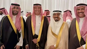 رقصة “العرضة النجدية”تجمع الممثل السعودي عبد الله السدحان بابنه في حفل زفافه