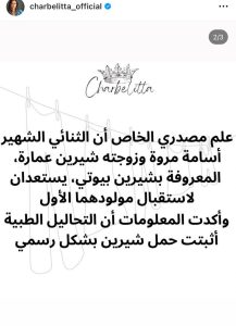 وكان المتابعون قد لاحظوا في الفترة الأخيرة إشارات غير مباشرة في ظهور شيرين، حيث بدت وهي تضع يدها على بطنها في أكثر من مناسبة، ما عزز الشكوك حول حملها قبل انتشار هذه المعلومات.